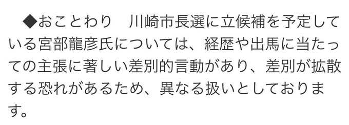 とある。果たして神奈川新聞が市長選候補者の宮部氏の政策だけを排除して報じることは