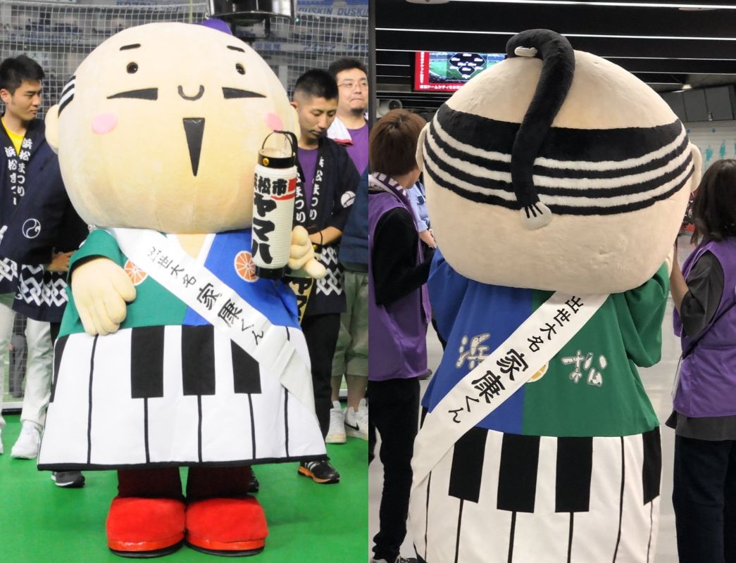 じみのくまモンで安定の人気を誇る。ヤマハの応援に登場したのは家康くん。なにそれ?
