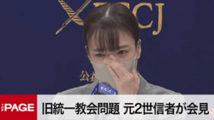 記者会見中に福本弁護士からのFAXが届き、涙ぐむ2世信者